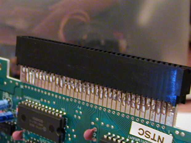 El conector y presione los pernos juntos para que sujete la Junta NES cuando se desliza en.