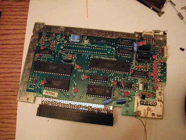 Finalmente, puede probar su NES! Soldar el pin de salida en el regulador (+ 5v hacia fuera) a 5v en el NES y conecte a tierra. Utilice un par de pinzas de cocodrilo para conectarlo a un televisor. Conecte en un cartucho (Asegúrese de que quede bien!), agregar la pila y pruébelo! Si no funciona, no te preocupes. Trate de cambiar los clipes de video y de la tierra. Si todavía no funciona, compruebe todas las conexiones. Asegurarse que no haya cortocircuitos en cualquier lugar. Es altamente improbable que frito tu NES. Una vez trabajando, póngala a un lado y salir de la pantalla que usted pidió.