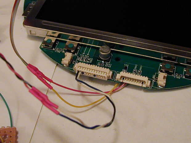 Tome el conector que guardado y encontrar los dos hilos hacia la izquierda. Ésos son los cables de alimentación. El azul es positivo. Cortar el resto de los cables y soldar un cable rojo, uno azul y uno negro al blanco. Para probar la pantalla, simplemente conecte el cable rojo al extremo positivo de la fuente de alimentación y un negro al lado negativo de las baterías. Debe encender la luz de la pantalla. Si no, véase el último párrafo. Usted puede cambiar sus conexiones y un fusible.
