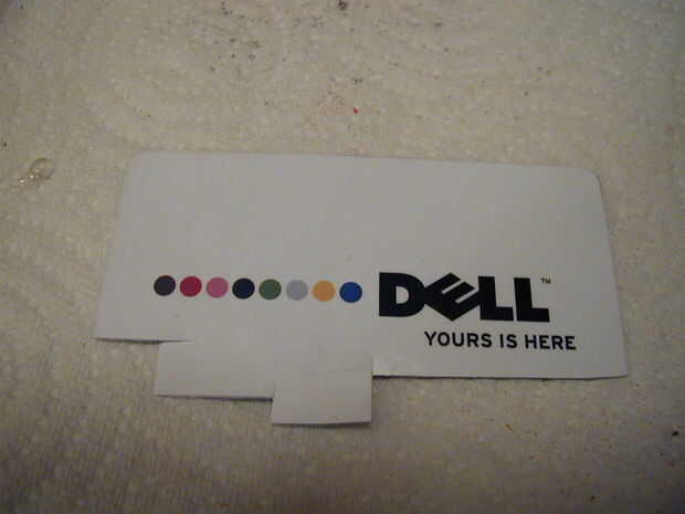 Ahora que estás pensando, "¿cómo los botones van a permanecer en el acrílico? Vas a caer justo hacia fuera!" No hay que preocuparse, planifiqué para eso. Obtener algún tipo de plástico delgada u otro material rígido. Usé una vieja tarjeta de regalo de Dell que tenía $1,78 dejó en él. Cortar pequeñas tiras y pegamento caliente en la parte inferior de los botones. Ahora los botones no se caigan. : D