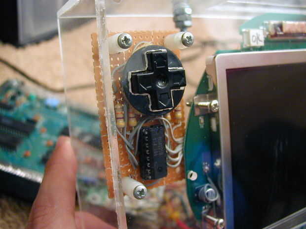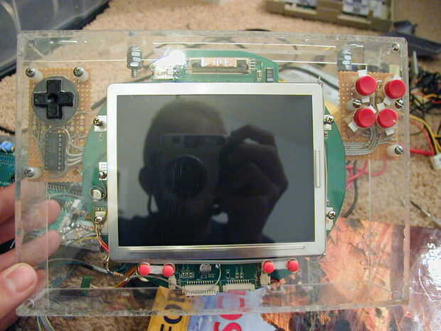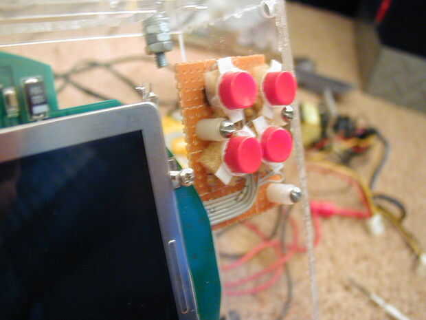 Los tableros de regulador, encontré, eran sólo ligeramente más altos que la pantalla de PSone. Por lo tanto, éstos van después de la pantalla. Hice el error de poner el controlador en primera e hice mucho trabajo extra.