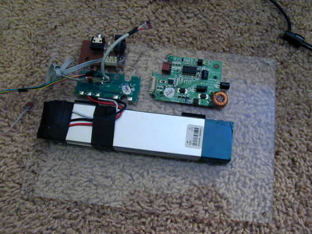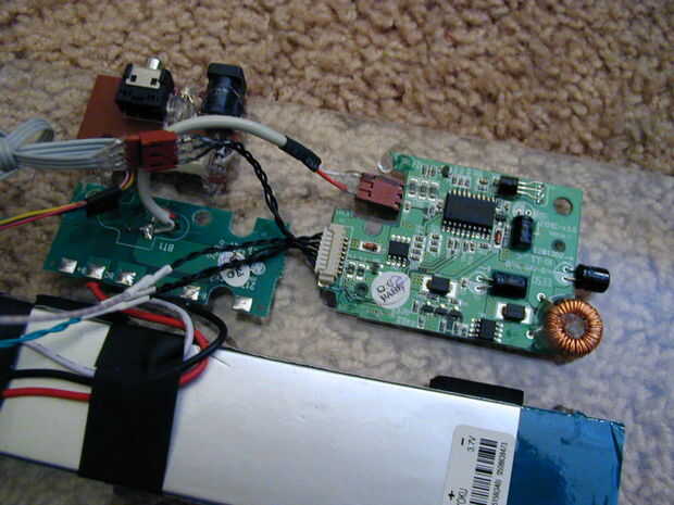 En cuadro tres se puede ver un primer plano de la Junta de protección de batería. Sacó el viejo conector de la batería y lo reemplazó con mi propia. Foto cuatro es el cable para ello.