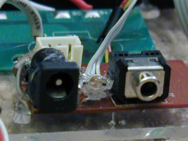 Cuadro 6 muestra el A / V out y puertos de carga. Entre ellos está el indicador de carga. Cuando la batería no está cargada, la luz es de color amarilla. Cuando se realiza la batería, el LED se vuelve verde. Algunos de ustedes pueden reconocer este LED desde el paso 2 de mis partes de PCB recuperación Instructable. Vale la pena mantener esta materia, hombre!
