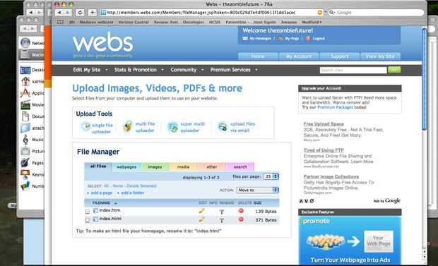index.html. El HTML es muy importante, ya que será tu página de inicio. Luego volver al administrador de archivos y haga clic en el lápiz junto a index.html y crear tu página web!