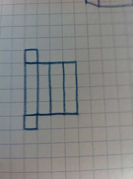 Dibujar tres rectángulos más en un lado y dos plazas en la parte superior