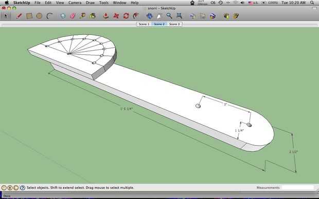 Para construir el codo, comience con una pieza de 1/2" madera contrachapada que es 8" por 5 1/2". Dibujar una línea 1 1/4" desde el lado de 8" y hacer 2 semicírculos que sale desde el centro de la línea. Los radios deben ser de 4" y 3" (cuadro 4). Hacer marcas cada 22,5 grados (apenas como el pedazo del hombro) (cuadro 5). Si desea utilizar el brazo como una guía para la perforación de los agujeros, perforar el agujero central y saltarse el próximo paso ahora. Si no, seguir adelante y taladrar los agujeros sobre la intersección de las líneas y el radio 3"(cuadro 6). Corte a lo largo de la línea semicircular de 4" y alinee el orificio en el centro con el orificio en el extremo del brazo más bajo (cuadro 7). Use un tornillo para mantener el orificio central alineado y use tornillos para unir las 2 piezas. Asegúrese de que sus tornillos estén al ras con la pieza semicircular.