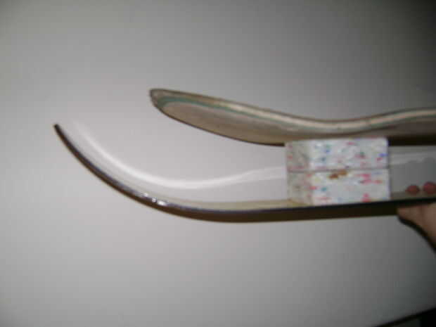 Para cortar las pistas de esquí te un cortador de rompecabezas usando un cortador de la lámina del metal. Esto es debido al borde de la calle. Ten cuidado porque el borde se pondrá caliente!!!!!! La longitud del esquí es determid por la longitud de su skatebored. En mi es 83cm desde la punta.
