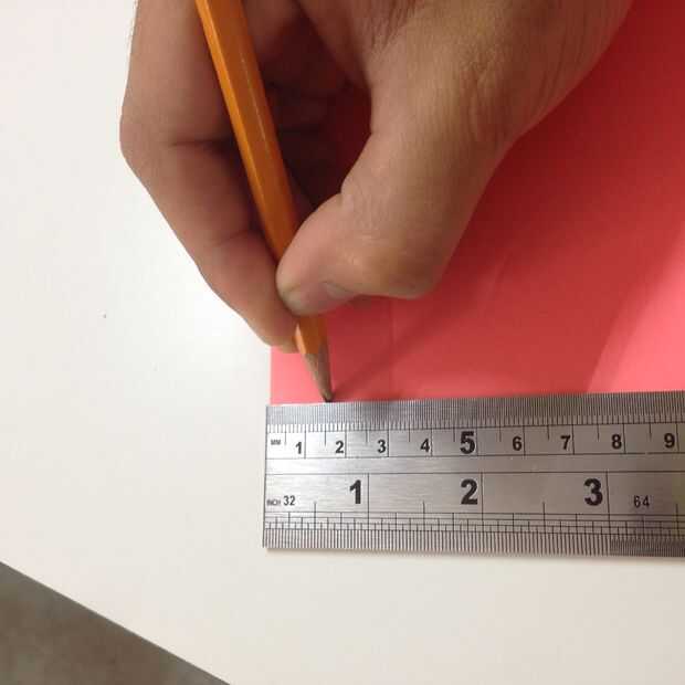 Aqui marcamos en la parte de la hoja doblada en amos laterales una marca de 1,5 cm.