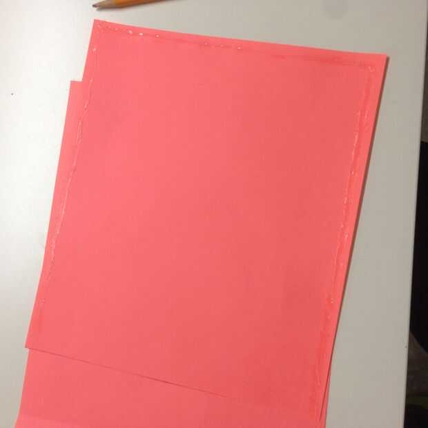 Luego cuántos la hoja corta (la mas pequeña) y con el silicio le pasamos por todo el borde como se puede observar en la imagen, luego la adherimos a la otra hoja, OJO te quede bien derechito.