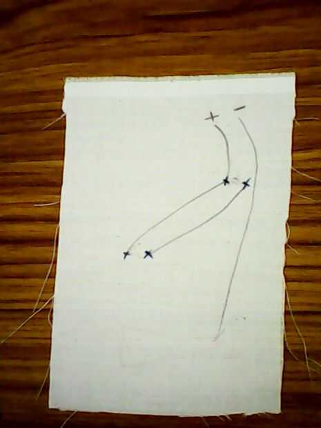 En otro pedazo de tela, al parecer el tamaño del bolso, marcar los puntos exactos donde debe estar el LED y también final de la pieza de resistencia variable. Dibujar el circuito en el paño.