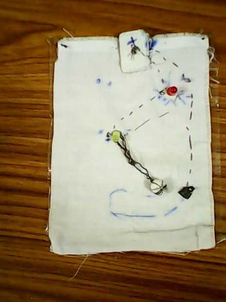 Desde la parte de la resistencia variable está en la capa superior, coser un pedazo pequeño de tejido conductivo a la porción final reforzará la conexión entre las capas.