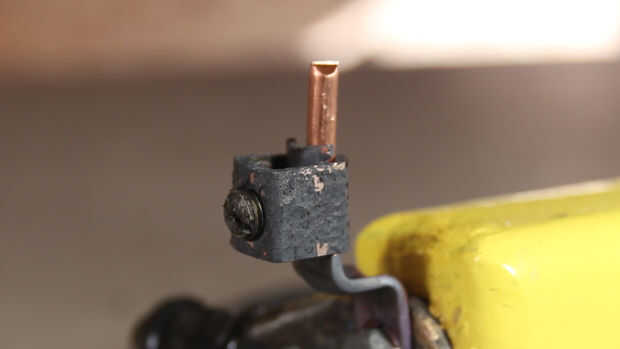 Cuando las puntas de los electrodos se gastan, es fácil y desenrosque el tornillo que sujeta en su lugar, agregue un trozo fresco de alambre de cobre.