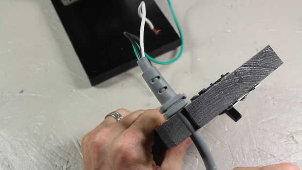 Antes de atornillar el panel en la base, asegúrese de que el cable va en primero. La pieza gruesa en el extremo de la cuerda impide que tirando hacia atrás aunque el agujero.