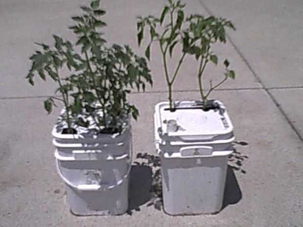 1. use menos agua versus el mismo vegetal plantado directamente en la un razón suelo (aproximadamente 70% menos) es el cubo tiene una tapa y sólo una pequeña abertura donde el tallo es mantener el agua evapore tan rápido como terreno abierto... más solo pone la cantidad exacta de agua hasta que se empieza a salir por el agujero del desbordamiento - luego dejas de regar