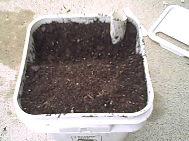 La tercera foto muestra la tira de fertilizante cubierta encima con mezcla de rellenado.
