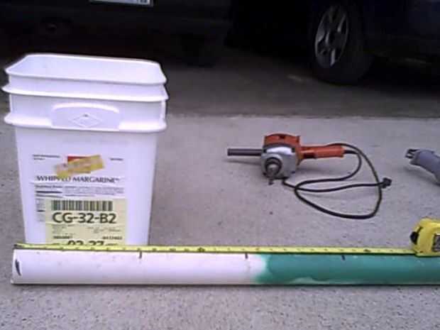 Usted puede construir estos con típico 5 galones redondos cubos... sólo tienes que ajustar la longitud de los tubos de PVC y aplicar un corte a cada longitud de tubería a inglete.
