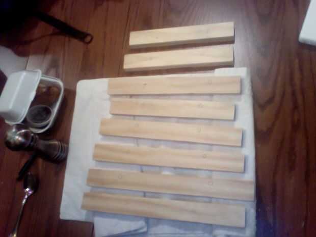 Los tipos de madera fueron un poco difíciles de resolver, pero encontramos un equilibrio de buen sonido y madera a buen precio era utilizar pino. La cantidad de madera que compramos (y tuvimos extra) fue de aproximadamente $14. Usted podría ir para un palo más caro, pero esto funciona bien para nosotros.