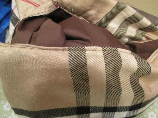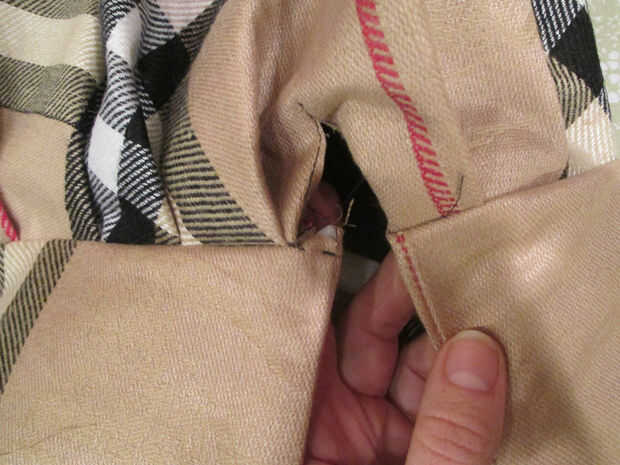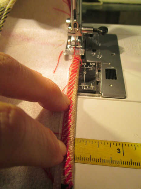 3. a su vez sombrero lado derecho hacia fuera. Borde del interior de la banda más 1/4" de vuelta y coser.