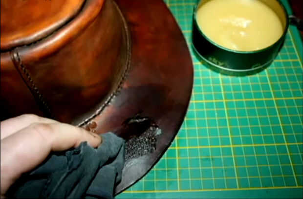 El punto de un sombrero es poder mantener el sol de su calor y la lluvia de la cara y un sombrero sin protección o no muy bien. Recomiendo usar un pulimento de cera base que llene cualquiera de los agujeros y ayudar a impermeabilizar sus costuras. Aquí le damos un instructable que hice en hacer tu propio esmalte.