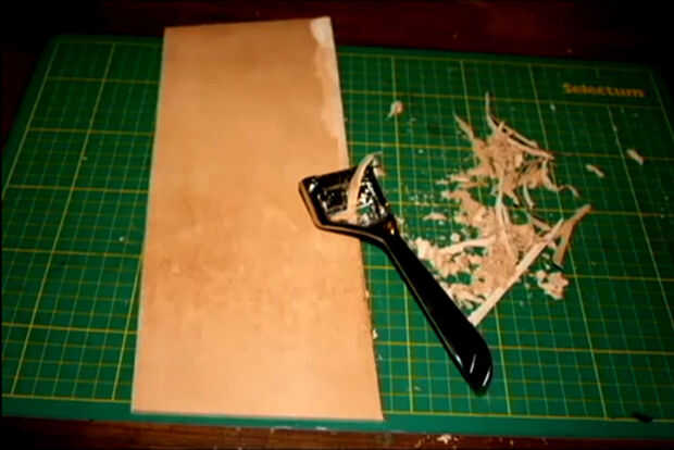 Ahora es el momento para arreglar esos pequeños resbalones con el cuchillo x-acto. Si usted tiene una herramienta de ribete de cuero, entonces este proceso es bastante fácil, sin embargo si usted no puede utilizar simplemente un poco de papel de lija de grano 220. Usando una lija de grano bajo tardará más para suavizar los bordes, pero voy mucho a mantener abajo inevitable rebaba que puede suceder en el lado de gamuza de cuero. Si su lado ante las rebabas, usted puede limpiar para arriba con su cuchillo.