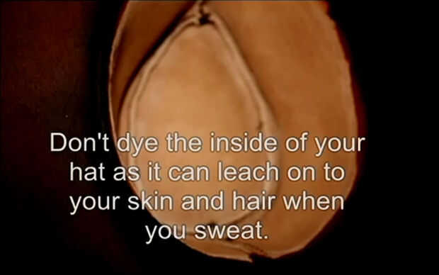 ** Importante **: no teñir el interior del sombrero. Se filtrarse a tu piel y hacerte lucir muy tonto en el proceso.