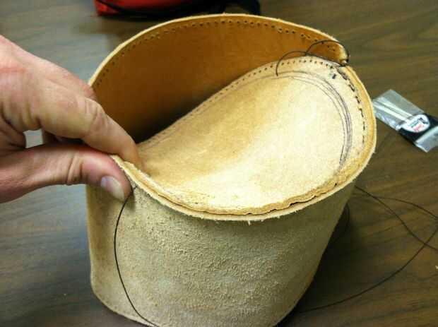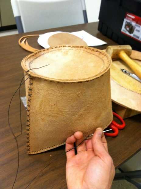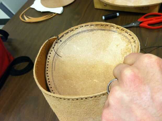 Lo primero que suturan fue la corona. No necesitas gastar demasiado tiempo para llegar a esta parte parece perfecto porque necesita tomar esto aparte más adelante. El hilo que estoy usando es un hilo encerado resistente de cuero de Tandy.