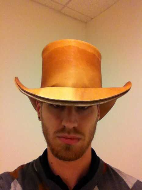 Mientras que fue empapando hice una caja para sostener en forma adecuada mientras se secaba. Puse el sombrero boca abajo y había acurrucado los lados del sombrero hacia abajo hacia la corona y la parte delantera y trasera. Luego lo dejé secar.