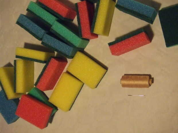 Esponjas, una aguja, cuerda, pegamento, un cuchillo, algún tipo de horquilla o de horquilla y un tablero de pan.