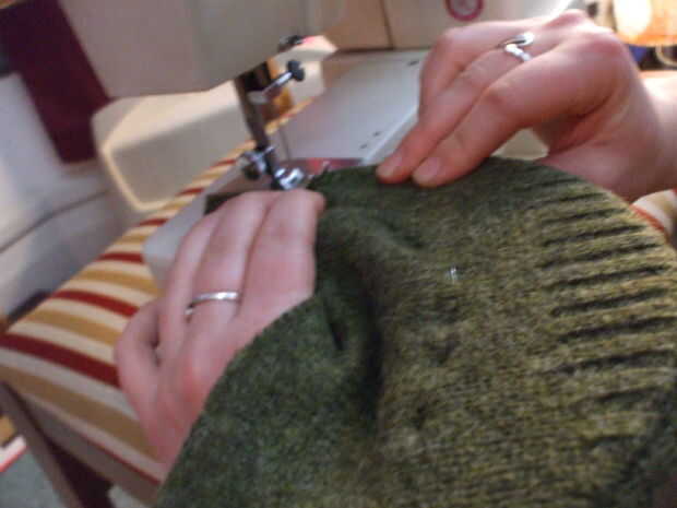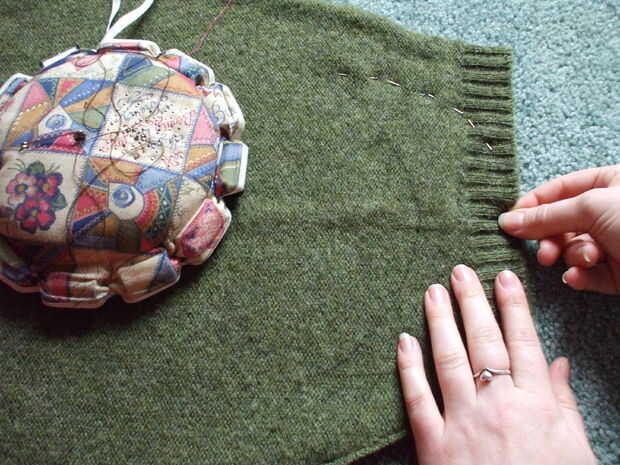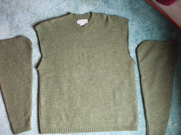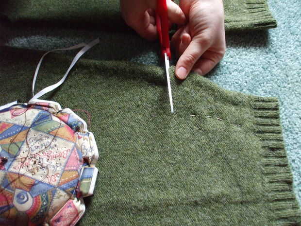 Abrir las mangas cortando la costura. Permanecer tan cerca de la costura como sea posible para obtener el máximo uso del material.