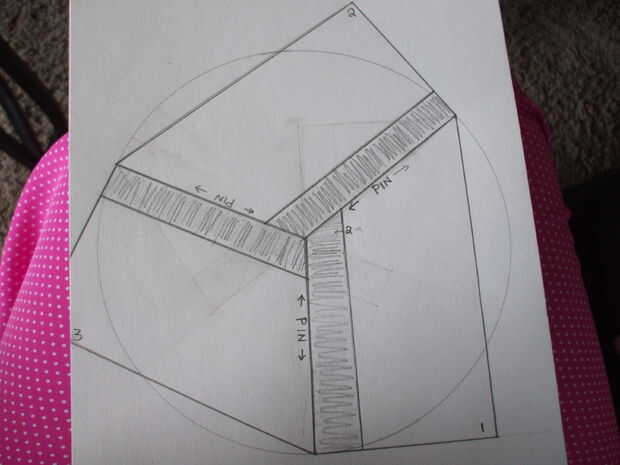Repita la superposición con la tercera pieza, metiendo las últimas 2 pulgadas debajo de la pieza #1 para completar el patrón.