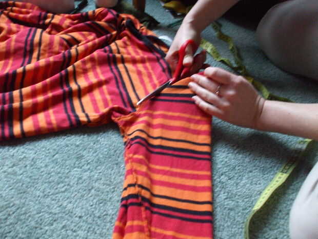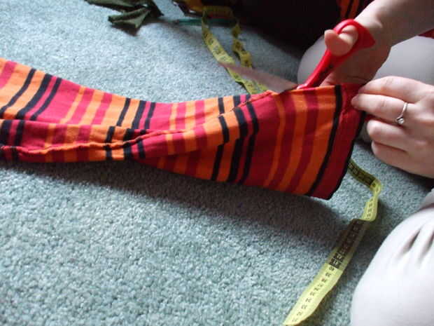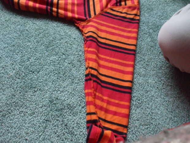 Usé la manga y fue un poco flojo, así que hice mi mejor esfuerzo para conseguir las rayas para funcionar verticalmente.
