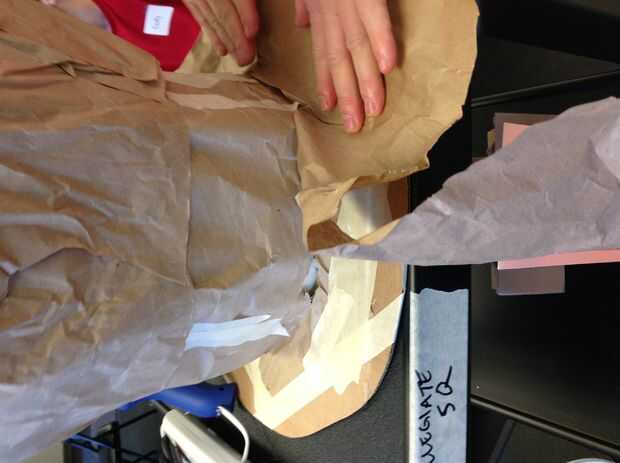 Haz cualquier papel de embalaje (chatarra) y pegamento en el borde del sombrero