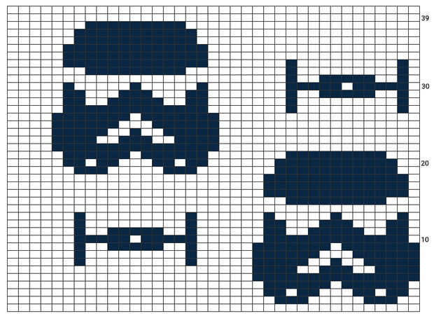 Rnd 2 – 18: Con sc en el lazo posterior solamente, repita la pauta para un total de 3 veces. Significa que tendrá un total de 3 Stromtroopers y 3 cazas TIE.