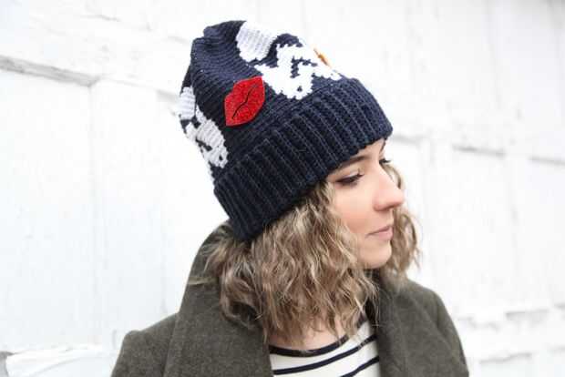 Utilizando una aguja de tapiz, tire de la cola de 8" a través de la sts y jale el hilo para cerrar el bucle. Tejer en los extremos sueltos.