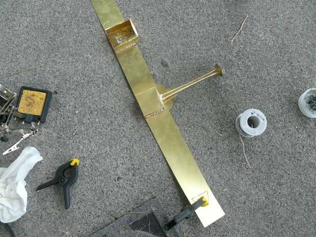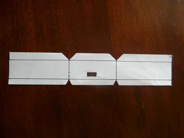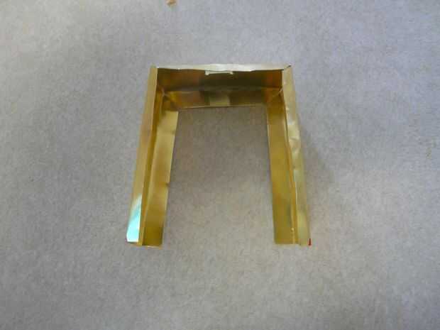 A continuación formé el caso de cobre amarillo para la batería del disco del plasma. Quería hacer realidad el paquete así que corte de metal de hoja más pesada. Usé la plantilla de papel representado con cinta donde iba a soldar. Una vez que sabía encajar bien, I remontar y cortar el latón. Utilizadas tijeras para cortar el latón. Para obtener las esquinas agudas usé un cuchillo del Exacto cortar parcialmente a través de la hoja. Pues yo utilizaba nariz alicates para doblar el metal en el caso en la foto.