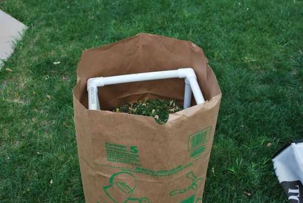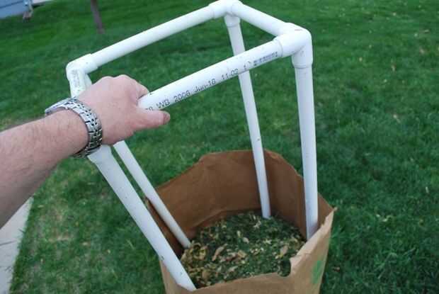 Todo paranoia a un lado, decidí hacer algo al respecto. Hice una bolsa de césped destacan ¾" PVC y unos accesorios que he pedido en línea y añade un par de características que pensé sería de ayuda.