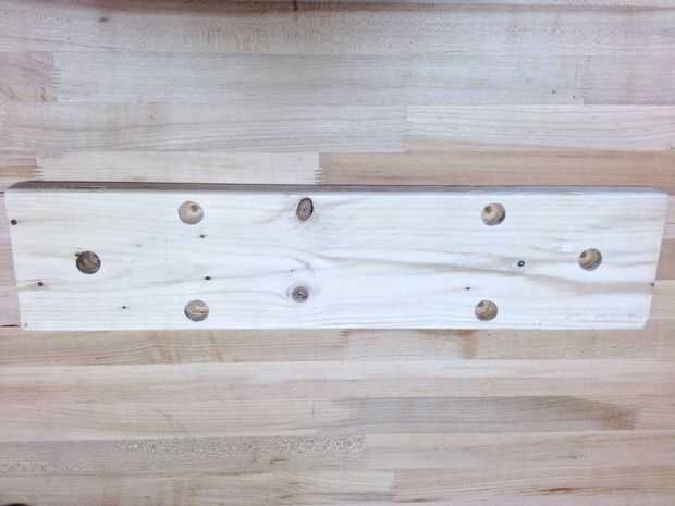 Los puntos centrales de los agujeros de la 2 parte deben ser la mitad (2 3/4") de ancho y 2 1/2" del borde.