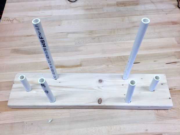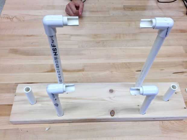 Inserte los tubos dos medio (6") en los orificios del frente 2 y coloque un codo en cada uno de ellos.