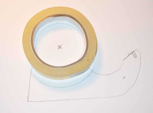 Para comenzar, coloque el rodillo de la cinta en un pedazo de papel y dibuje un círculo dentro del rodillo de la cinta. El círculo será la parte que sostiene el rodillo de la cinta dentro del titular. Una vez que ha dibujado el círculo de su tiempo para algunos dibujo creativo. Dibujar una forma áspera para el contorno entero del titular de la.