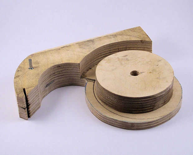 A continuación Lije todas las piezas y suavizar los bordes. Cuando las piezas son lisas, pegar el círculo a una de las piezas laterales y la parte inferior. Espere a que el pegamento se seque entonces al otro lado del titular de la cinta en lugar de la abrazadera y perfore un agujero para el perno en algún lugar en el círculo (no tiene que estar en el centro. Este taladro recto pensado todo titular. Ahora usted puede poner junto con el perno y tuercas de mariposa (utilice una arandela en ambos lados). A continuación Alinee los lados y perfore un pequeño agujero para un tornillo en la parte delantera. Este agujero será perforado a través de los laterales y a medio camino en el marco. Poner el tornillo en el agujero y corte de la cabeza del tornillo (su también puede utilizar un pequeño taco de madera en lugar de un tornillo. Este tornillo funciona como un pequeño pivote que mantiene los laterales alineados.