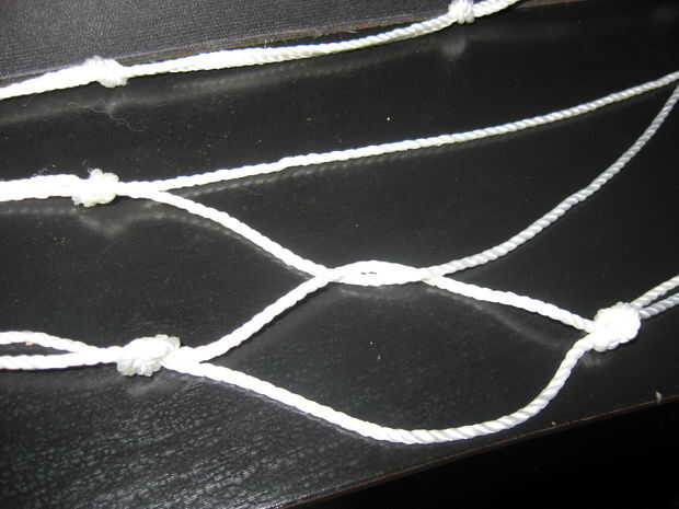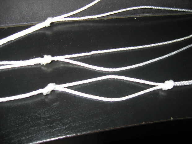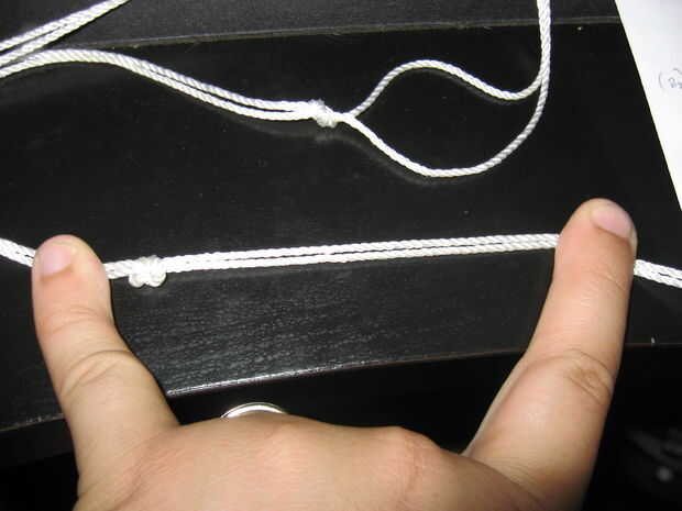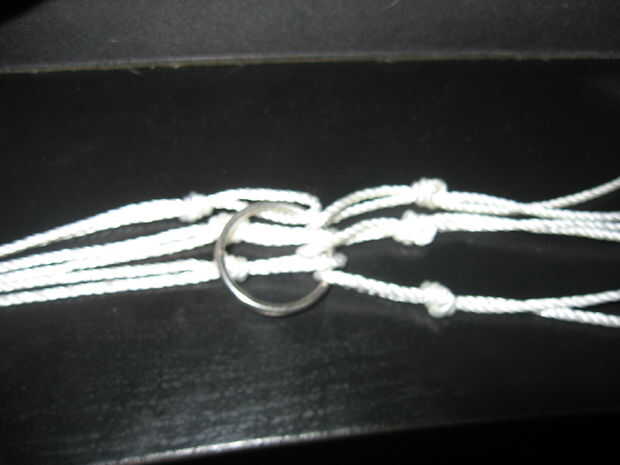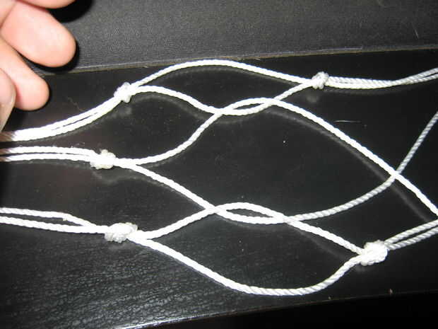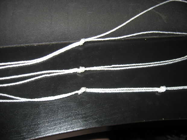 Ahora han anudado su primer tramo, tejer otro en línea "entre" las cuerdas de dos sub de inicio entre los nudos que acaba de hacer (véase los cuadros 5-7) puede atar los segmentos dos sub a sí mismo (como yo) o utilizar un grano, atadura, etc.. Asegurar el segmento por algunos medios y continuar por la línea.