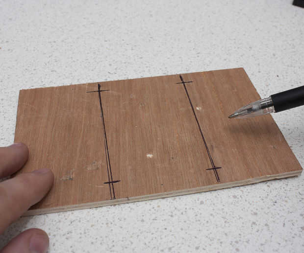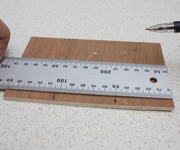 Longitud-maneras, marca la madera 5cm de un extremo y 4,5 cm de la otra.