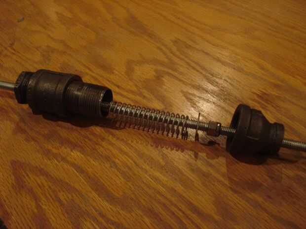Nota: esto se basa en el hecho de que la primavera no se ajusta a través de la 1/2" de apertura en la parte inferior. Asegúrese de que su primavera es amplio suficiente, o usted tendrá que utilizar una lavadora de segunda en la parte inferior para mantener el resorte en. También, asegúrese de que su lavadora superior no se ajusta a través de la campana.