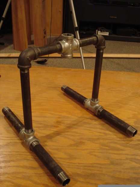 En primer lugar, construir la parte superior de la base atornillando los tubos de 1/2 "x 3" en lados opuestos de la 1/2" Cruz. Luego atornille el 1/2" codos de 90 º en los extremos de estas tuberías, asegurando que ambos apuntan hacia abajo, alinearon con uno de los otros agujeros en la Cruz.