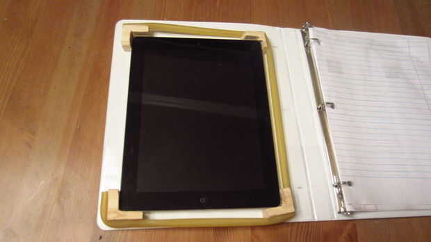 ahora, muchos músicos usan iPads como tablas de hojas letra/acordes. Comercial, como el iKlip, puede costo $30 y arriba. Hice este otro para $5.Quiero darle crédito a replayerreb cuyo soporte de iPad para usar mientras que carpa camping fue la insp
