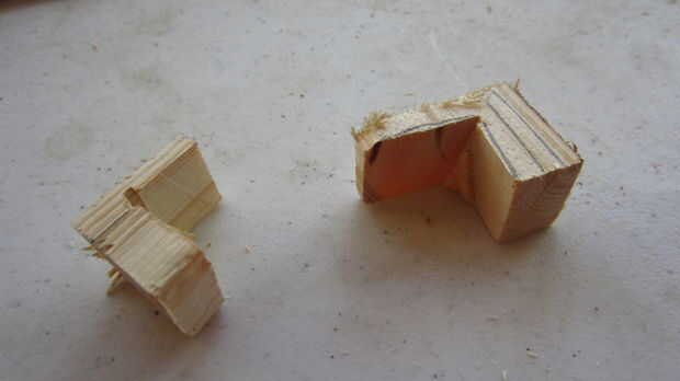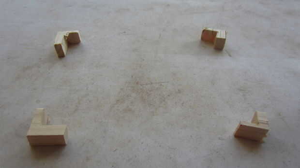 Corte 4 piezas como estas. Aprox. 1 1/2 "x 1 1/2" piezas en forma de L.