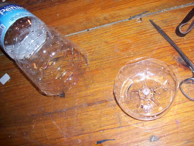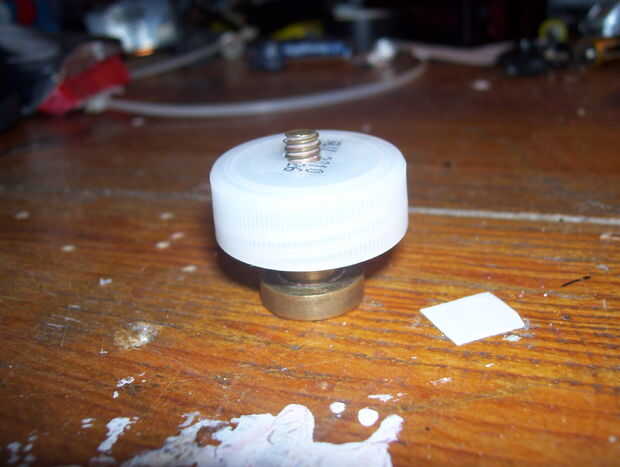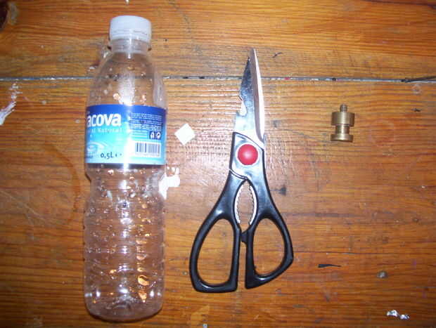 Ahora hacer un agujero con su scizors en medio de la tapa de la botella y meter el tornillo del trípode en