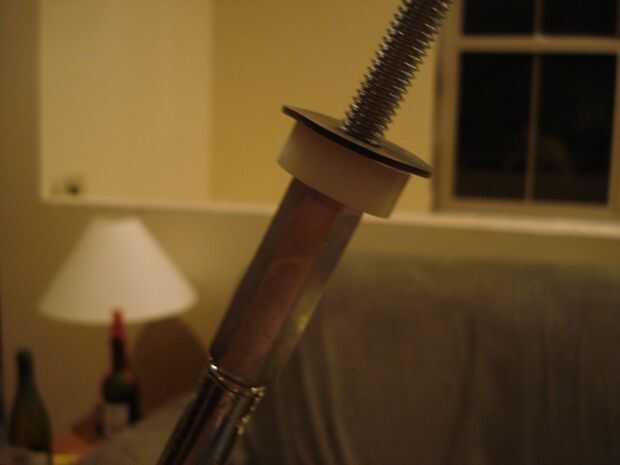 La diapositiva en el platillo, seguido por el segundo espaciador arandela y nylon de goma.