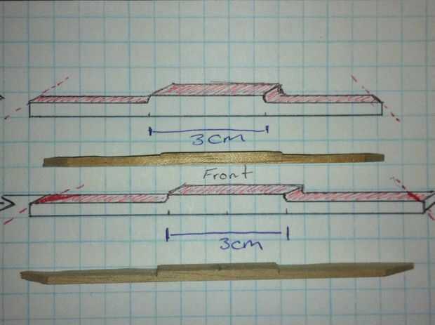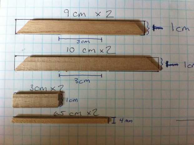 Paso 5: con el cincel o un cuchillo con cuidado!!! Disipe o tallar la madera como se muestra en la imagen. De 9 cm y las piezas de 10 cm, dejar solo el centro de 3 cm. En cuanto a las piezas de 4 x 4 mm deje solo los primeros 3 cm.