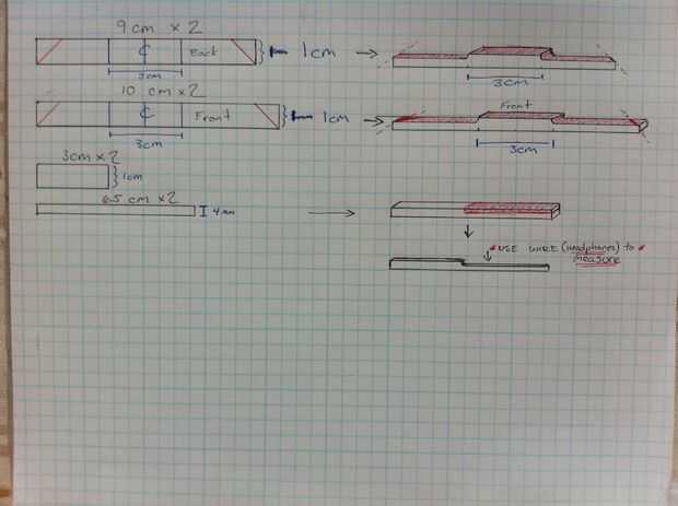 Paso 2: Cortar (2) 10 cm x 1 cm x 4 piezas mm. Cortar los extremos en un ángulo de 45 grados, marca el centro y el centro de 3 cm.